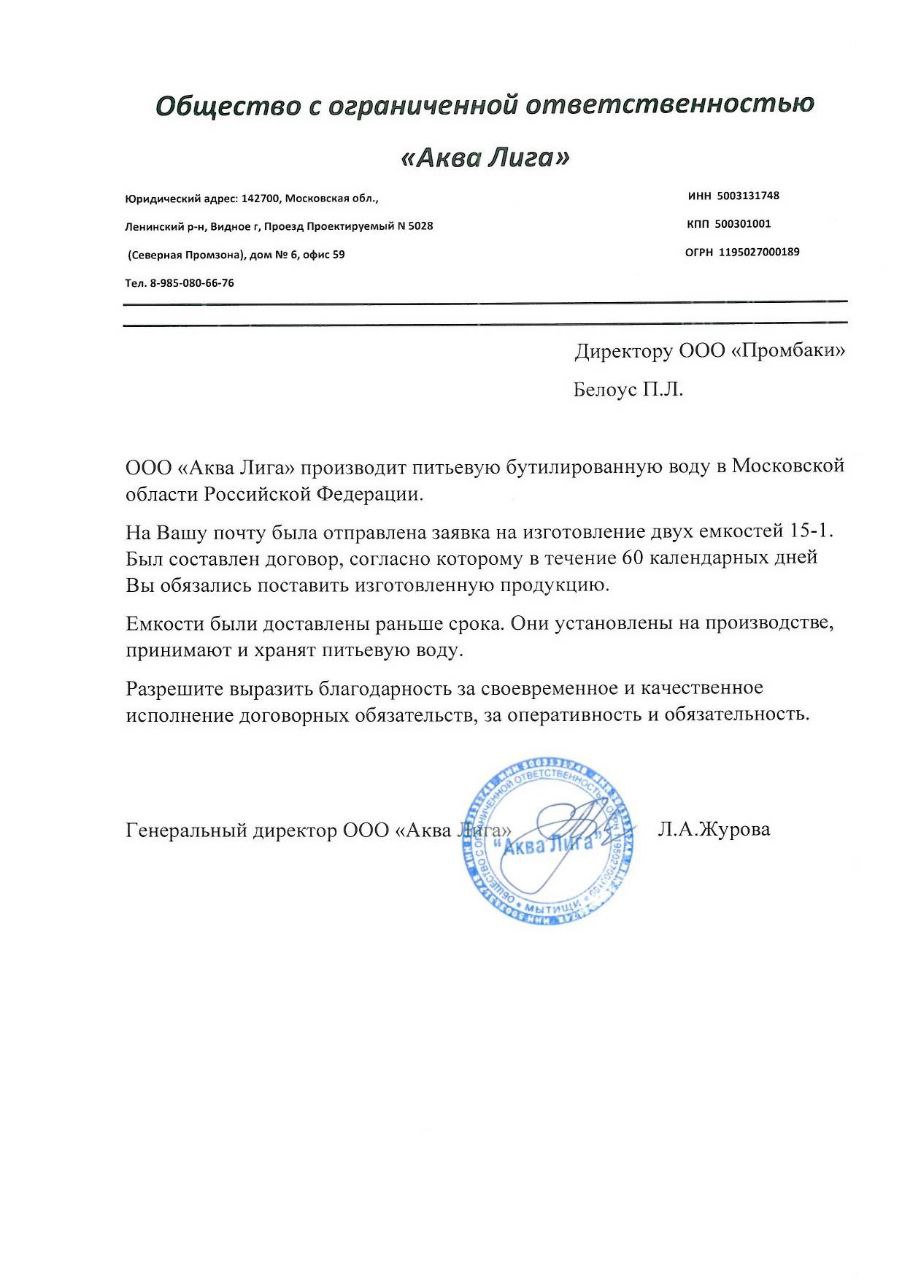 Поздравляем! Вы получили уникальную возможность воспользоваться дополнительной скидкой при покупке резервуаров. Для получения бонуса, пожалуйста, напишите на наш email info@prom-baki.ru