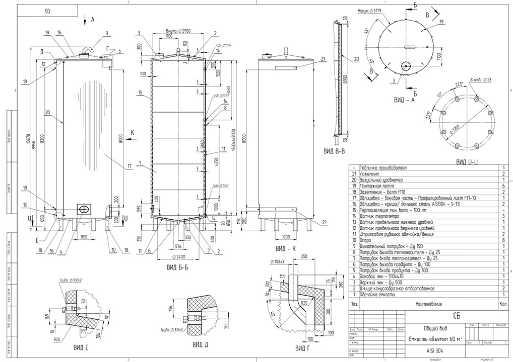 Термоизоляция минвата – 100 мм. Облицовка: крыша/ донышко сталь – AISI304, боковая часть – профлист.